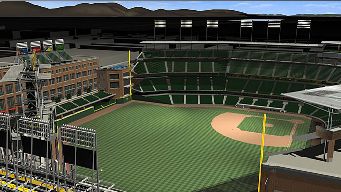 The leftfield bleachers rise above a small street and connect to a building across the street. Now that’s integration. I hope the risers are made of steel or aluminum so that they can get really noisy. It wouldn’t be hard to bring the “A” or triangle shape used in last year’s model.
