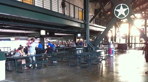 Anyway, the concourses inside are tremendous. There’s plenty of room to walk around, hang out, sit at a picnic table, or smoke if you are so inclined. In many places they are some 60-80 feet wide, allowing the Rangers to move around numerous portable concessions carts as if it were the Texas State Fair. And that’s how it feels. The regular concession stands are built below the seating bowl, cutting off the view of the game for those on the concourse. Unlike the two previous parks, there’s still an open air feel to the venue, so at least the crowd doesn’t sound muffled.