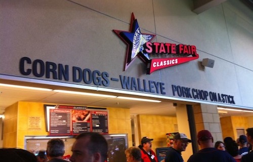 The stands of choice are the State Fair stands, which have a bunch of items you won’t find elsewhere, such as walleye or a pork chop on a stick ($11/7.25 respectively). Cheese curds ($4.75) are said to be popular, and I saw at least one person with a $9.75 turkey leg. 16 oz. domestic beers are $7, while premium beers are $7.50. I chose a Summit Extra Pale Ale, perhaps the most popular local craft brew, for the small 50-cent premium.