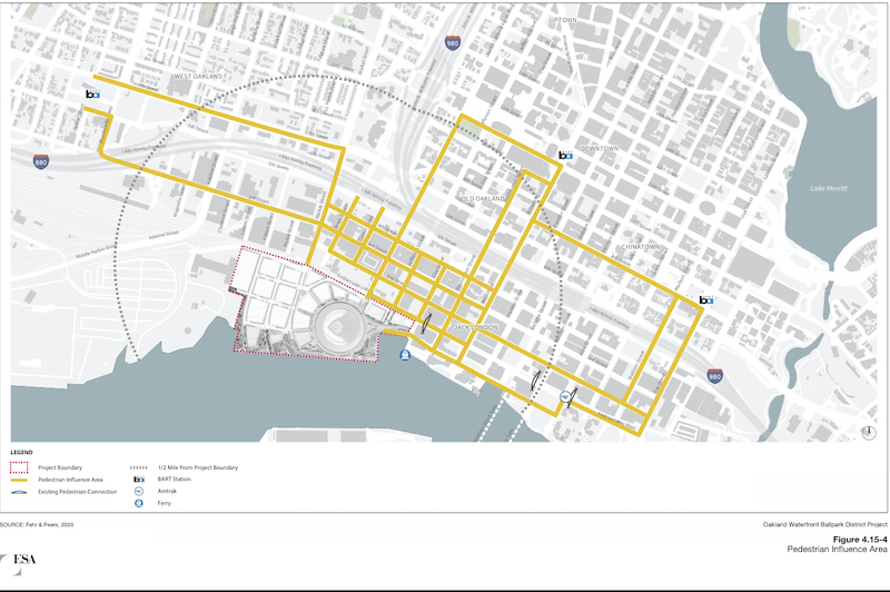 A similar strategy was employed by the City of San Jose when the Diridon ballpark EIR was written with one major difference, the presence of an expanded transit hub that would include Caltrain, VTA light rail, and eventually, BART. Of course, that’s now water under the bridge and Google, not the A’s, is taking the arrows for the current project there.