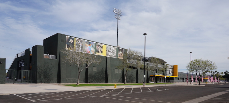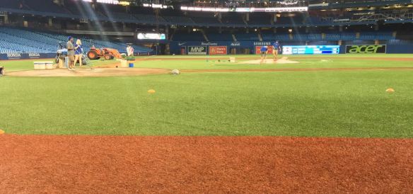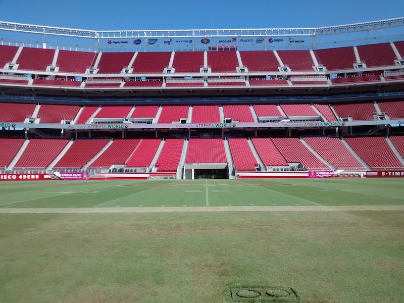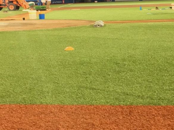 The field at GLF is 50 feet below street level. Fans can take separate escalators to the upper decks or the lower club level, which is more easily reached by elevator. The playing surface is Shaw Sports B1K, just like the recently installed turf at Chase Field. Something about how these surfaces diffuse and reflect light makes them look better in person than on television, where the effects appear harsher. At GLF there’s a normal dirt infield while the warning track is made of crushed brick.