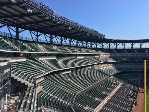 I know many of my critiques come off as reverse snobbery. Believe me, I understand that there’s a budget, and every project has to set priorities as no budget is unlimited. As a venue, GLF comes off as competent. The scoreboard is huge and well placed over right field. The main goal, to get more fans via a more comfortable experience, is working to an extent. For now, though, Globe Life Field feels way too uptight. The black beams everywhere are a step towards formalwear when all you want to do is get rid of the button-up and wear a T-shirt. The sound is decent and will be tested by Elton John, who plays GLF in September as part of his farewell tour. Someday I’d like to come back when the roof is open. Maybe that’s all the place needs to loosen up.