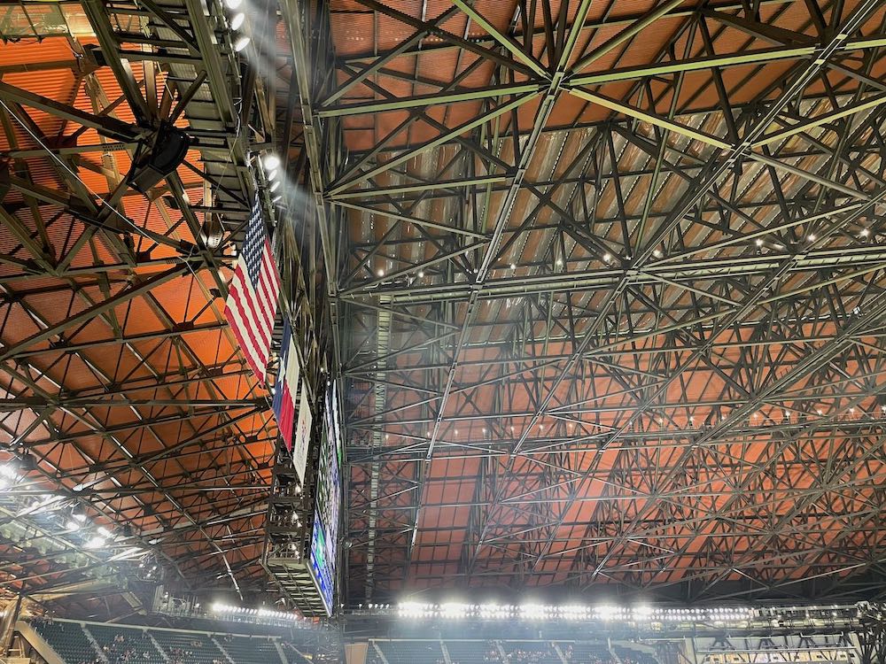 About that GLF roof: I’ll be nice and say it’s functional. Like US Bank Stadium in Minneapolis, the top of the roof is covered with mostly transparent ETFE panels. ETFE allows for natural light to filter in. Unfortunately, the other two-thirds of the roof (nearly 4 acres) is covered with a rubber membrane. The Rangers got some flack locally when they revealed this, as their initial renderings showed a glistening roof that would’ve been covered in ETFE. Sadly, value engineering won out because of materials costs and the need to control the energy bill, so they went with a better insulating material for most of the roof. When I saw pictures of it online a couple of years ago, I thought the rubber sections were actually steel, as is often used in retractable roofs. Only when I got closer did I recognize what happened. The explanation made more sense in hindsight. It’s really too bad they didn’t use ETFE all the way around, as it promised a visual appeal that isn’t possible now. That said, I wonder if it would’ve been like what was done originally at the Astrodome, where skylights were installed to help grass grow there. That experiment failed miserably.