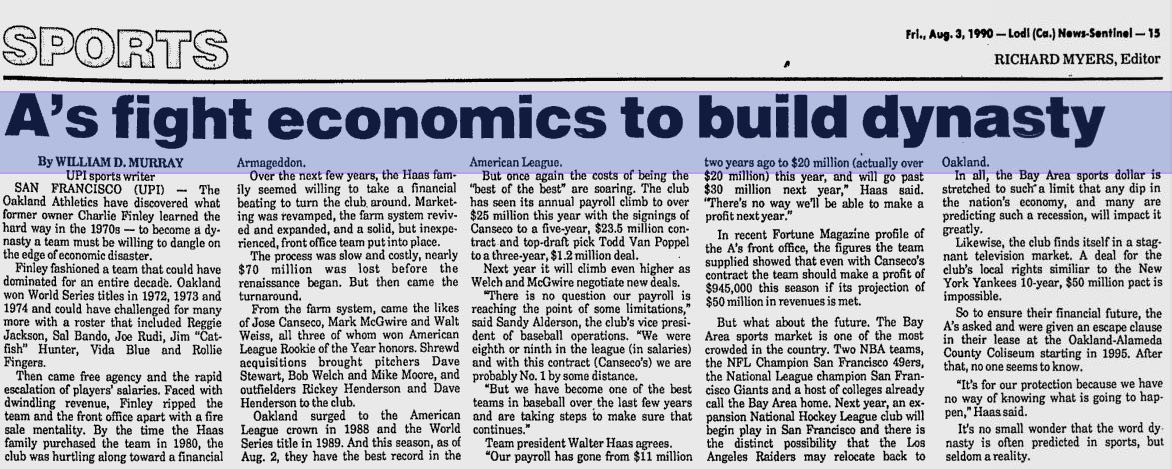 P.S. – A decade ago, the A’s had a chance to buy KTRB, the same station they used as a stepping stone to streaming last year. They could’ve used more patience back then, too.